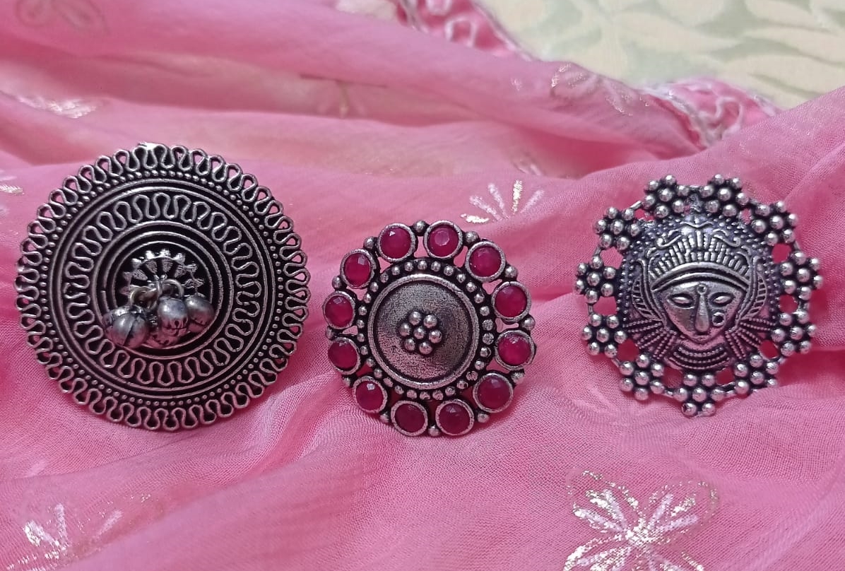Set Of 3 German Silver-Adjustable Finger Rings